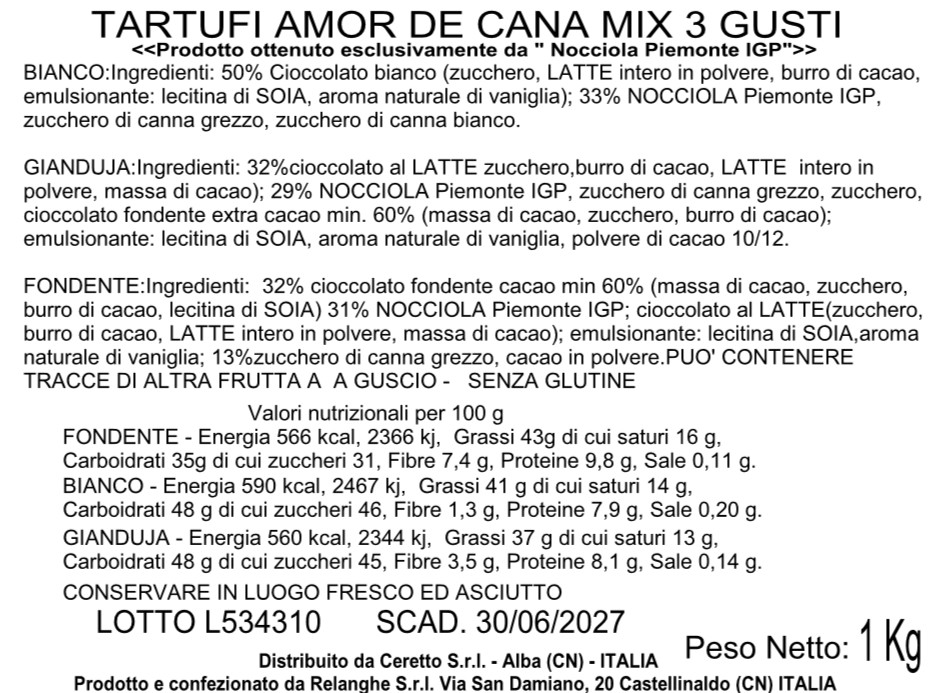 Scopri il nostro mix di Tartufi Dolci con Zucchero di Canna Grezzo e Nocciole Piemontesi; una selezione artigianale che unisce qualità e gusto autentico.Realizzati con pregiate Nocciola Piemonte IGP, i tartufi sono proposti in tre varianti irresistibili: cioccolato fondente, intenso e deciso; cioccolato gianduja, morbido e avvolgente; cioccolato bianco, delicato e cremoso.Un mix elegante e goloso, perfetto da regalare o da condividere.
